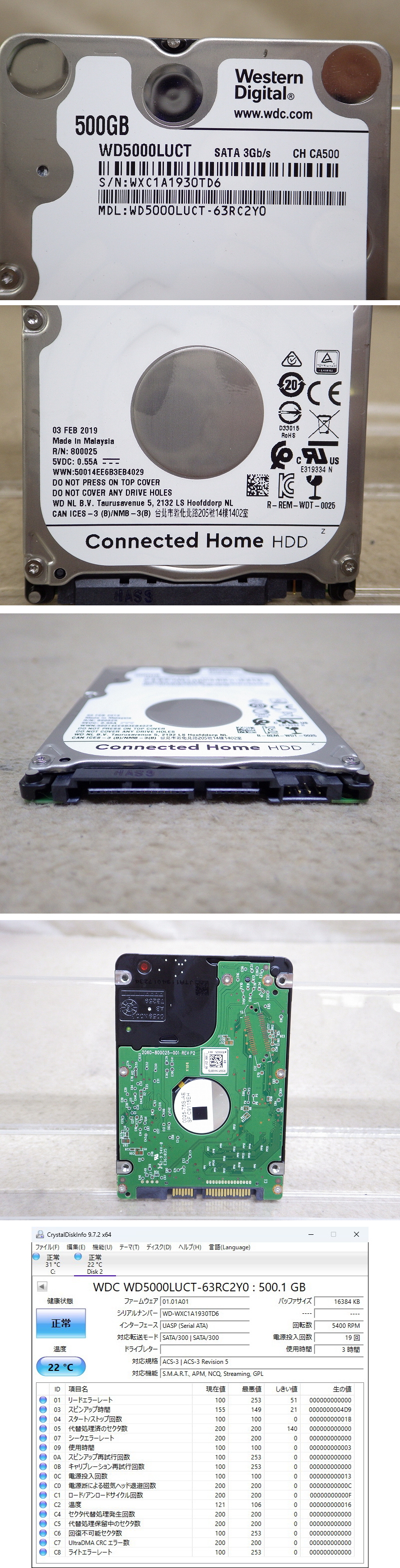 Kネま2281 WD 2.5インチ SATA 内蔵HDD 500GB WD5000LUCT-63RC2Y0 パソコン周辺機器 PCパーツ ハードディスク 收藏