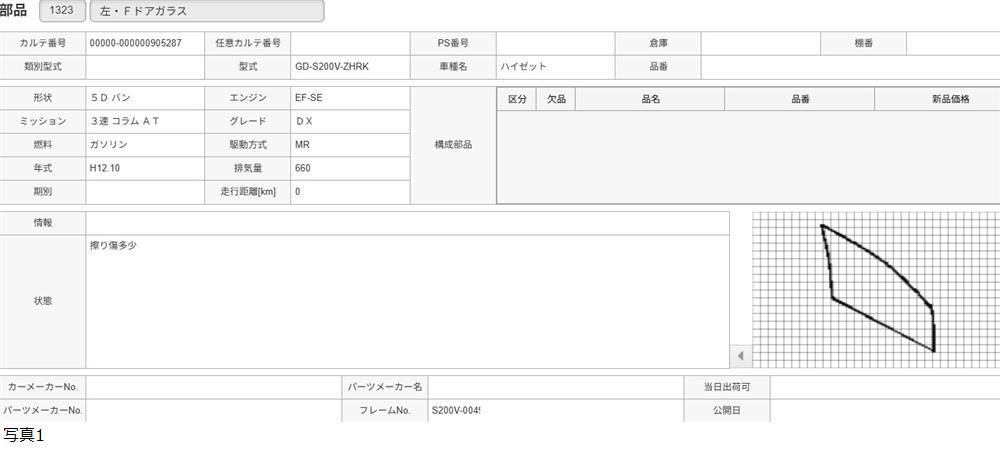 H12年 S200V ハイゼット 左 フロントドアガラス /送料 SS/905287 收藏