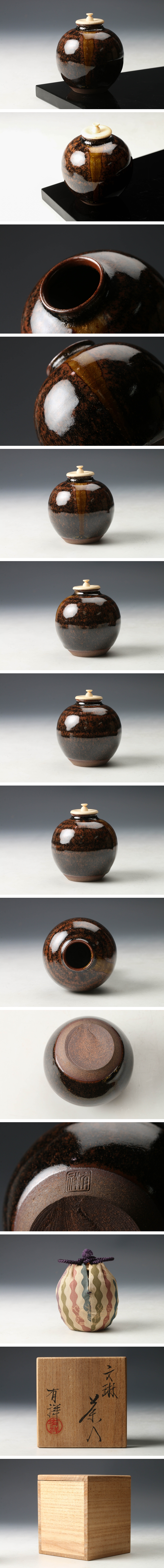 【佳香】笹田有祥 文琳茶入 共箱 仕覆(萬葉華文) 茶道具 本物保証 收藏