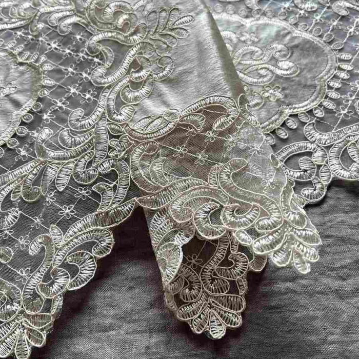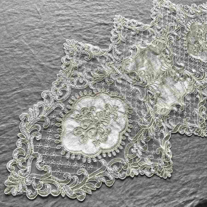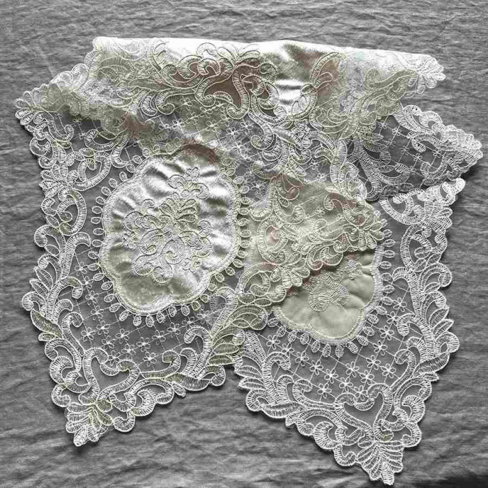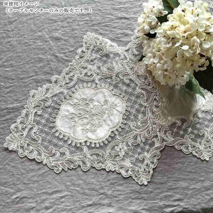 | 淡いベージュ系ニュアンスカラーの色のベロア生地が上品なテーブルセンター。テーブルの中央やシューズBOXの上などにお使い頂きやすいサイズとなっています。 |