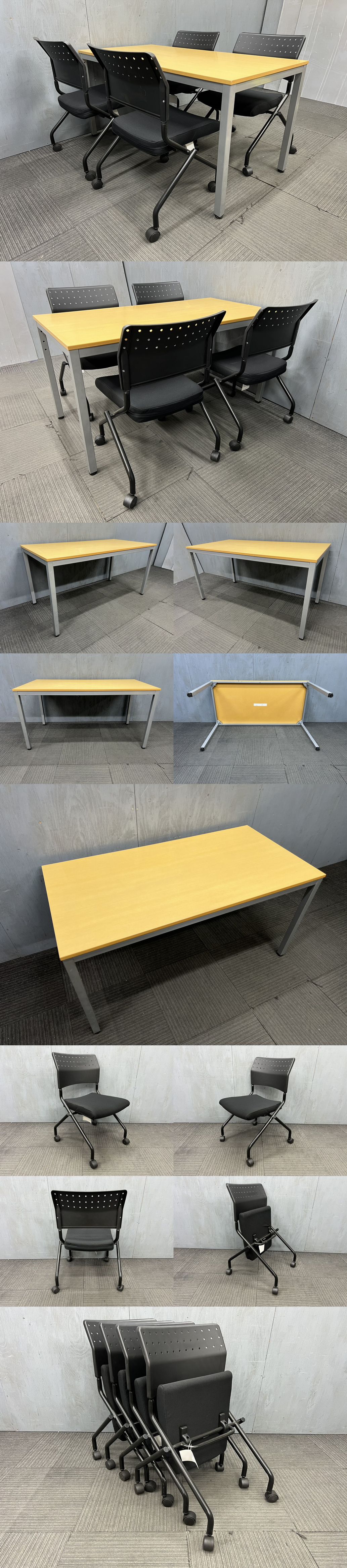 ◆管1604◆自社便対応地域あり◆コクヨ製◆会議ミーティングテーブル 幅1400mm◆オフィスコム◆ネスティングチェアー4脚◆天板 メープル系 收藏