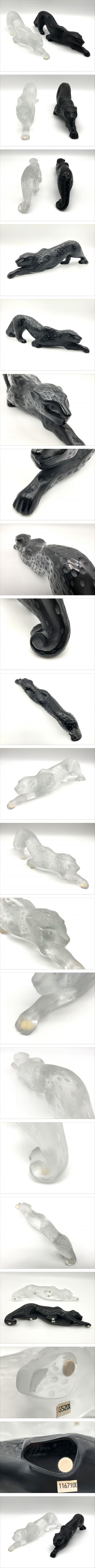 【2点セット】Lalique ラリック ゼイラ パンテール オブジェ ラージ クリア ブラック クリスタル ヒョウ 約36cm 動物 置物 インテリア 553 收藏