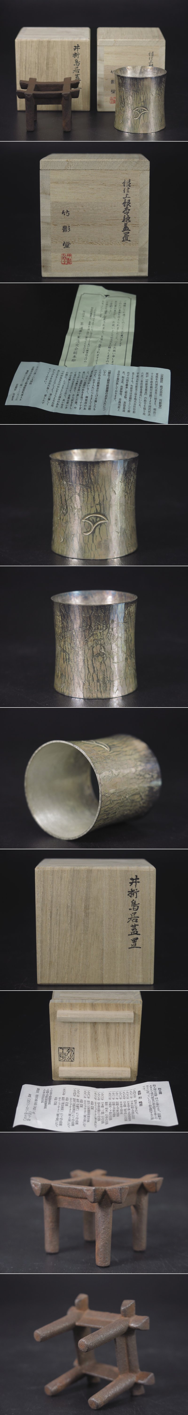 | 商品名 | 蓋置 2点まとめて 烈工房 長野烈 井桁鳥居蓋置 竹影堂 銀仕上銀杏紋蓋置 栞 共箱 茶道具 |