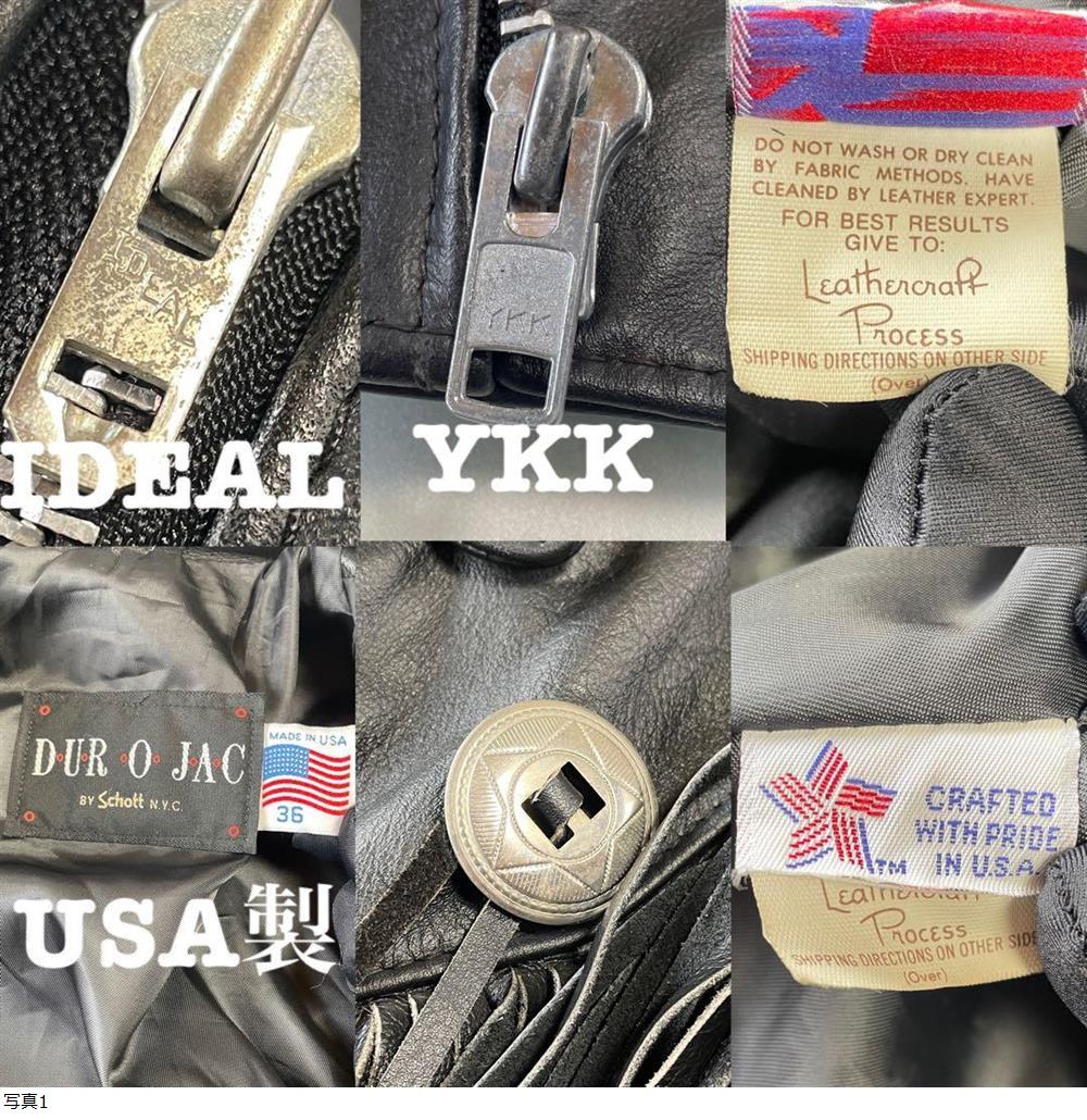 USA製 80s 90s ショット デューロジャック フリンジ レザージャケット ダブル イデアルジップ Durojac by Schott 黒 MADE IN USA 收藏