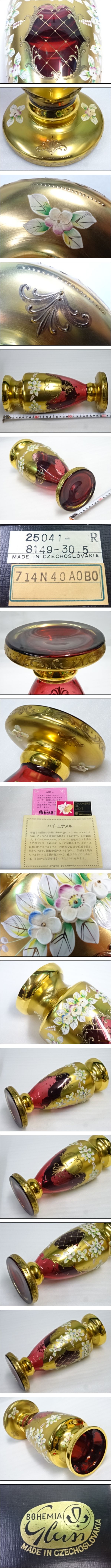 84-52/BOHEMIAボヘミアガラス 金彩 ハイエナメル ヴィンテージ花瓶 フラワーベース 工芸ガラス 西洋花器 花瓶 インテリア雑貨 コレクター 收藏