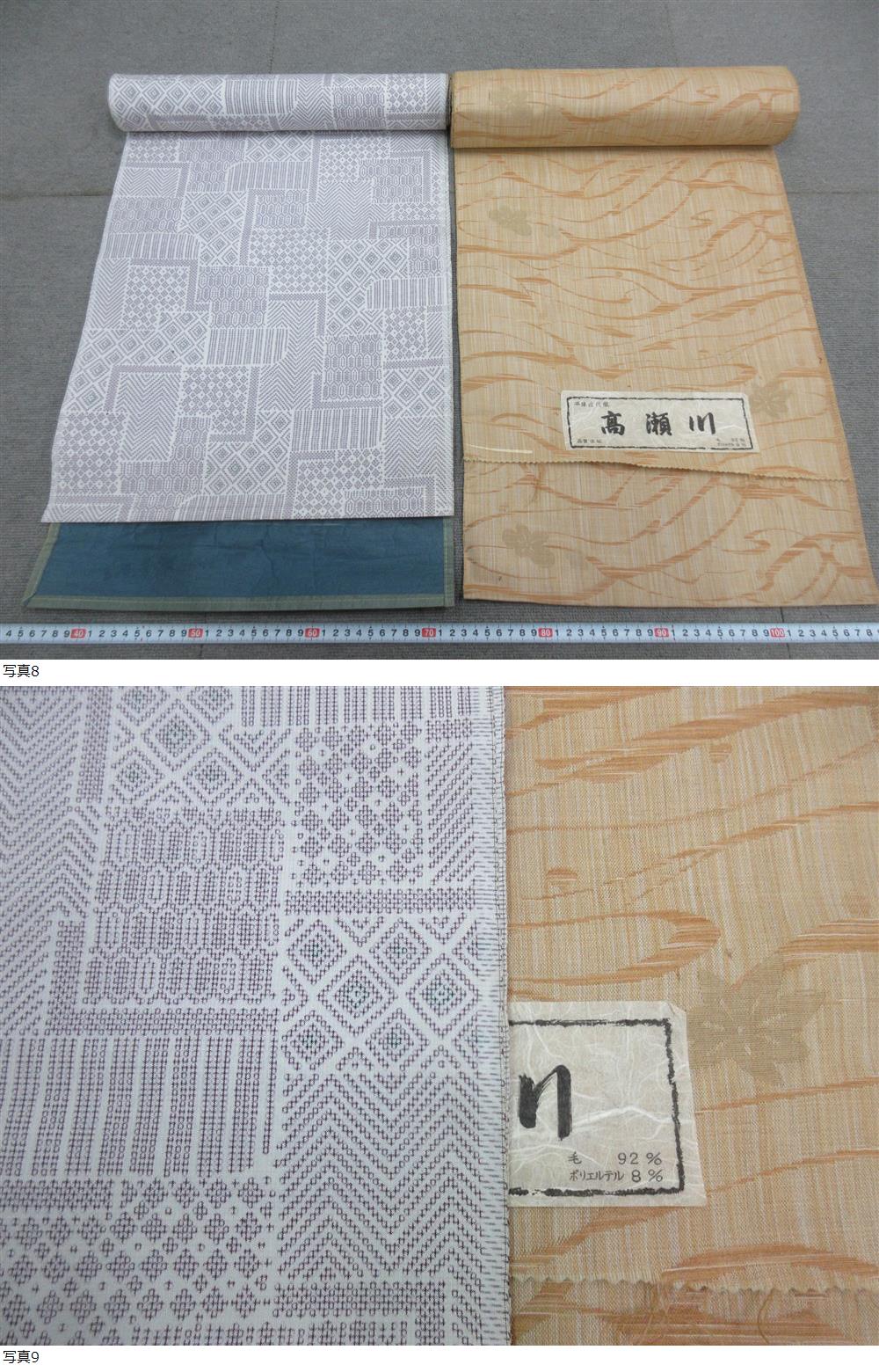 M【2-22】□2 呉服店在庫品 反物 15本まとめて 正絹 紬 純毛 他 未使用長期保管品 / リメイク素材 生地 布地 和服 着物【9-10】 收藏