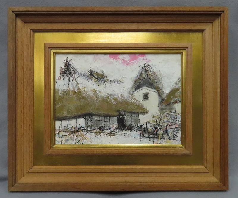 【こもれび】 油絵● 内田光之助 『会津風景(田島)』F4号 【古民家風景 日動画廊シール付】 收藏