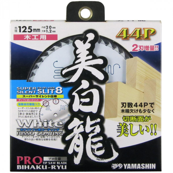 | 木工用チップソー。増量刃数でより美しい切断面を実現。ホワイトフッ素コーティングはチップソーをサビ・切粉・ヤニの付着から守ります。滑りの良い快適な切断が行える、プロ仕様にふさわしいチップソーを実現しました。木端欠けも減り、より切断面を美しく仕上げます。合計8ヶ所のスリットをチップにより近い位置にレイアウトした設計と、振動吸収樹脂を圧入したカラーレーザースリットが、静音性と制振性を向上させました。 |