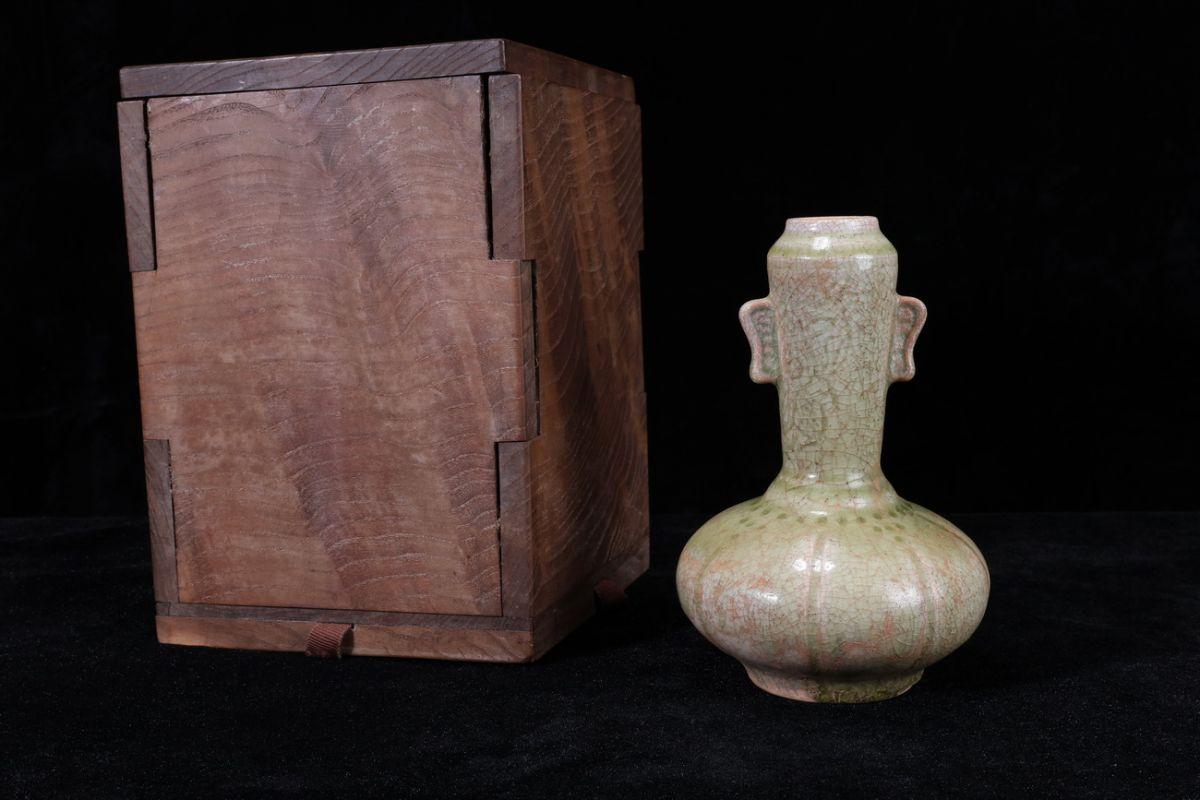 【珍品堂】1円から 時代物 双耳花瓶 木箱 中国花瓶 花器 稀少 年代物 蔵出し 骨董品 古美術 H17cm AB20 收藏