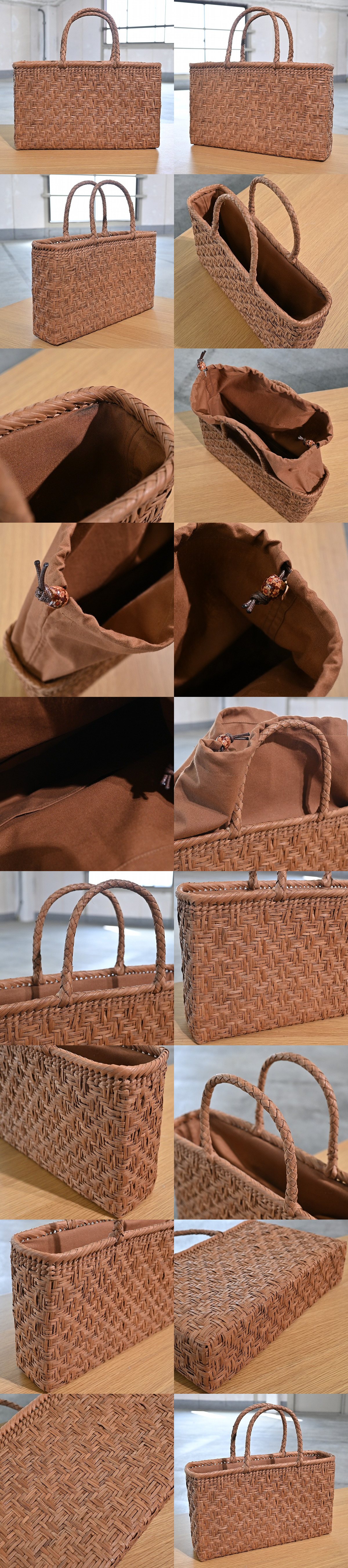 新品未使用 志穂里 山葡萄かごバッグ 14万 E 網代編み 柿渋染め ハンドメイド 内袋 巾着 レディース 手提げ 女性 籠 やまぶどう_三越伊勢丹 收藏