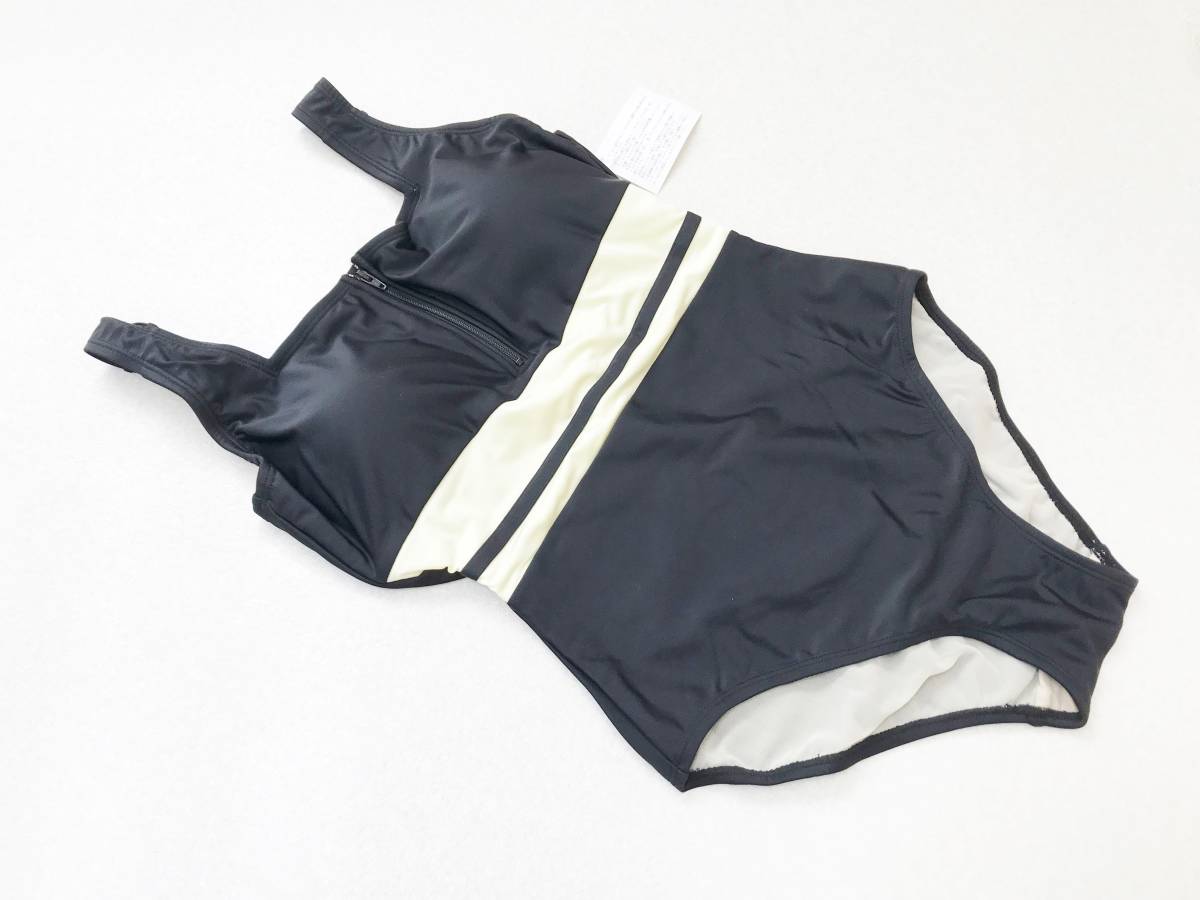 ●水着 M●ハーフジップ・お腹補正裏地・総裏地・ワンピース水着:ブラック 收藏