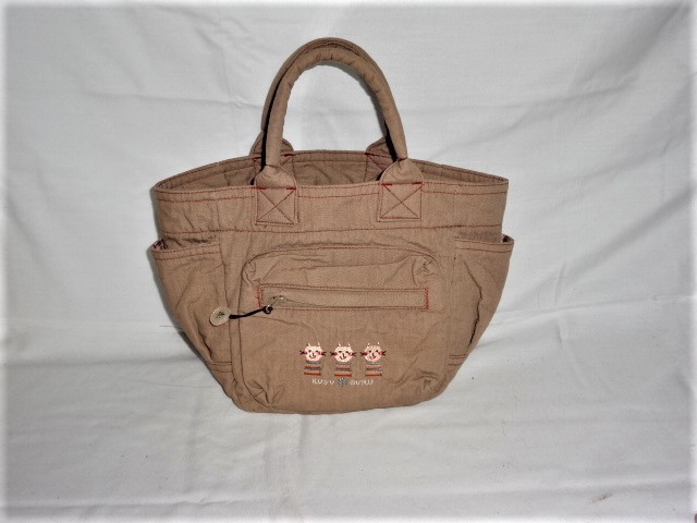 KUSU・手提バック サイズ:横約2×幅約10×H約18Cm中国製 綿100% 外ポケット3個 中古品 箱なし (同梱発送はできません) |