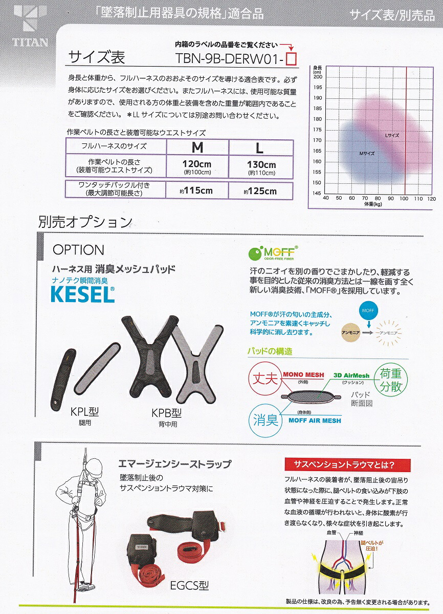 新規格 タイタン TBハーネス EXJ伸縮ダブルセット TBN-9B-DERW01 サイズM フルハーネス ベルト付 TBN-9B-DERW01-M-BG TITAN 808062 。 收藏