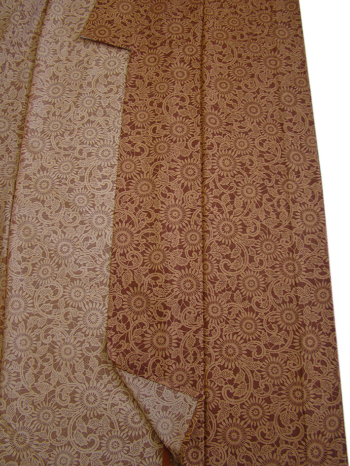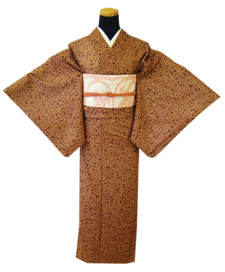 | 商品説明 | こちらのお品は夏物でございますので、7月~8月にお召頂ければと思います。 「絽」と言えば、紗と双璧を成す夏のお着物の生地で、 その最大の魅力は絶妙の透かし加減でございます。 清涼感溢れる地の風を通すしなやかさは夏に着物を着るという贅沢を 快適に愉しませてくれる事でしょう。 着物には、大きく分けて「袷(あわせ)の着物」と「単衣(ひとえ)の着物」と「夏着物」があります。 反物(表地)を着物に仕立てるときに、裏地類をつけるものを袷の着物、 つけないものを単衣の着物と呼び、胴裏や八掛といった裏地がつかない一枚ものの着物です。 また裏地がないため、座る時などにヒップのラインが目立たないよう、 居敷当て(いしきあて)の生地をつけることもあります。 居敷当ては付いておりません。 しなやかな手触りの滑らかなさらっとした肌触りは絹と間違ってしまいそうな 洗える高級ポリエステルの「絽」の生地で涼やかな風合いを醸しております。 茶色地に胡桃色の花の染柄が洒落感溢れる着物姿を演出しております。 帯はポリエステルのなごや帯(たいこ柄)でしなやかで扱い易く〆易く、 白色地に赤色の花の織柄がお顔映りも華やかな帯姿を奏でております。 帯〆は煉瓦色地の組紐となっております。 |