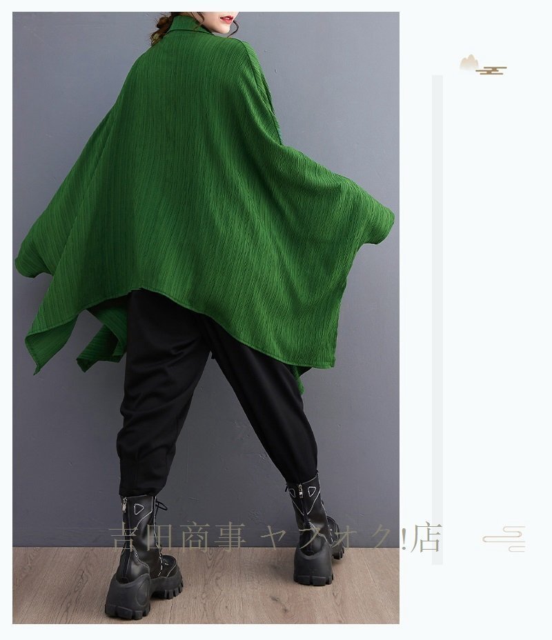 A7262☆新品ゆったり大きいサイズ 体型カバー レディース 5L~6L相当 フリル 長袖 チュニック 緑 收藏