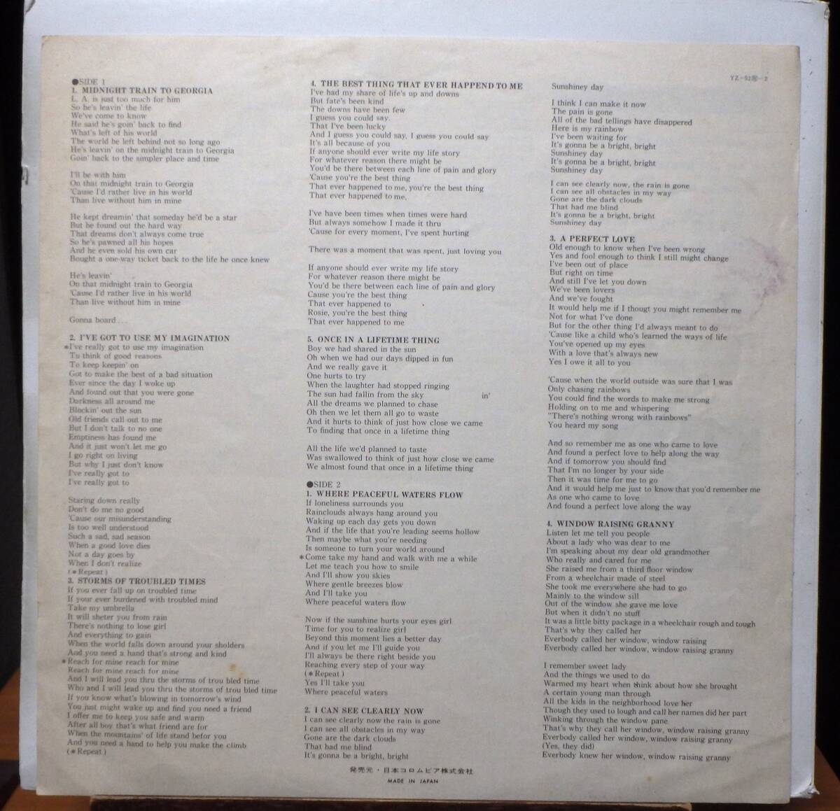シングル・リリースされたA1「Midnight Train To Georgia」が全米1位/A2「I've Got To Use My Imagination」が全米4位/A4「Best Thing That Ever Happened To Me」が全米3位を獲得。アルバムも全米9位を記録。