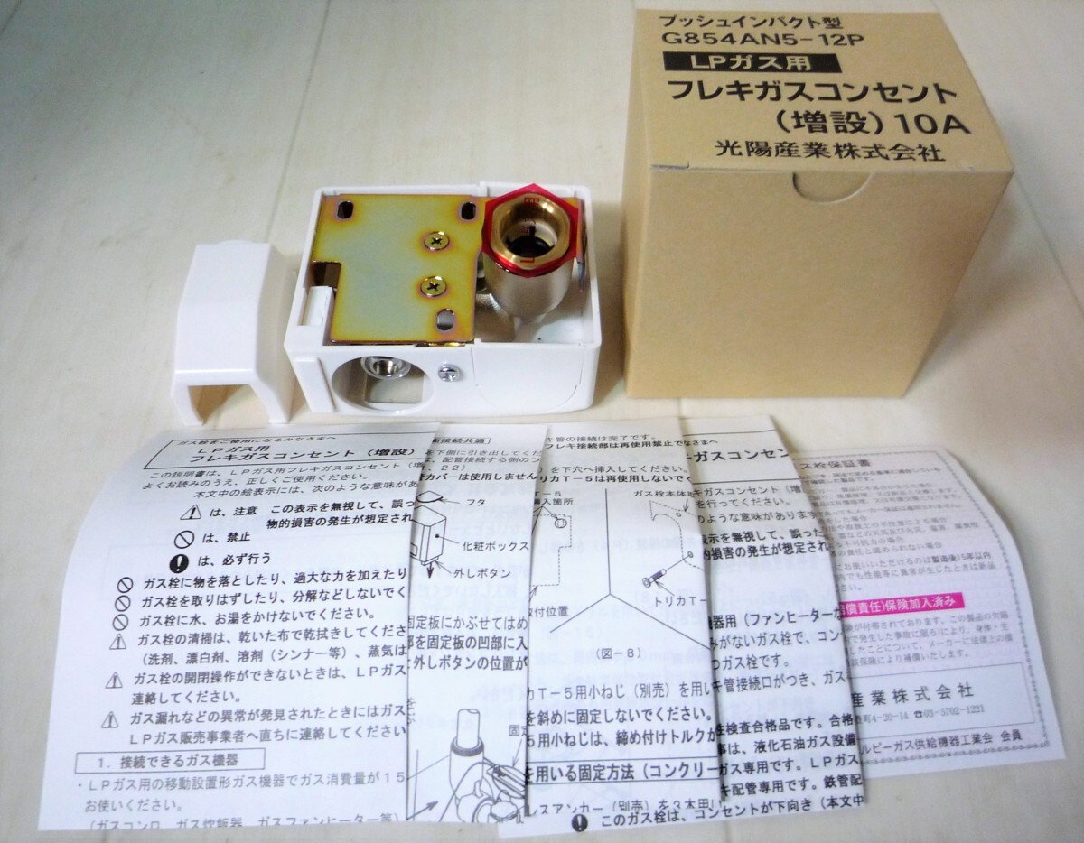 ☆光陽産業 G854AN5-12P プッシュインパクト型 LPガス用 フレキガスコンセント増設 10A◆3方向接続3,191円
