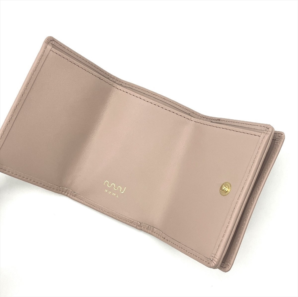 ヌール NUUR MERE WALLET Wホック 三つ折り財布 レザー ピンク ゴールド金具 コンパクトウォレット DUSTYPINK 日本製 箱付 レディース 收藏