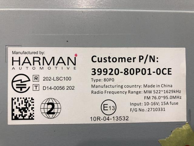 | 備考 | CD/AF/Bluetooth/純正/2015年地図/HARMAN.39920-80P01-0CE/GPS.アースコード.USBコード付き/シリアルNo.2710331 | ||||