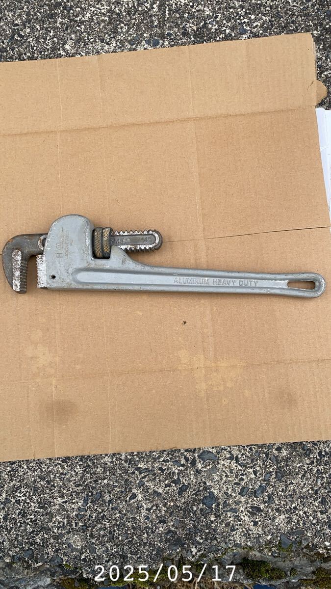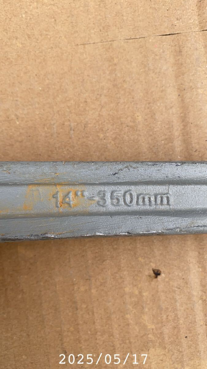 | ・アルミ製のパイレンです。 ・サイズが14インチ、350mmです。 ・使用に伴う傷がありますが、噛みこむ部分は摩耗がすくないと思います。 ・柄の部分に打痕傷があります。写真8参照 |