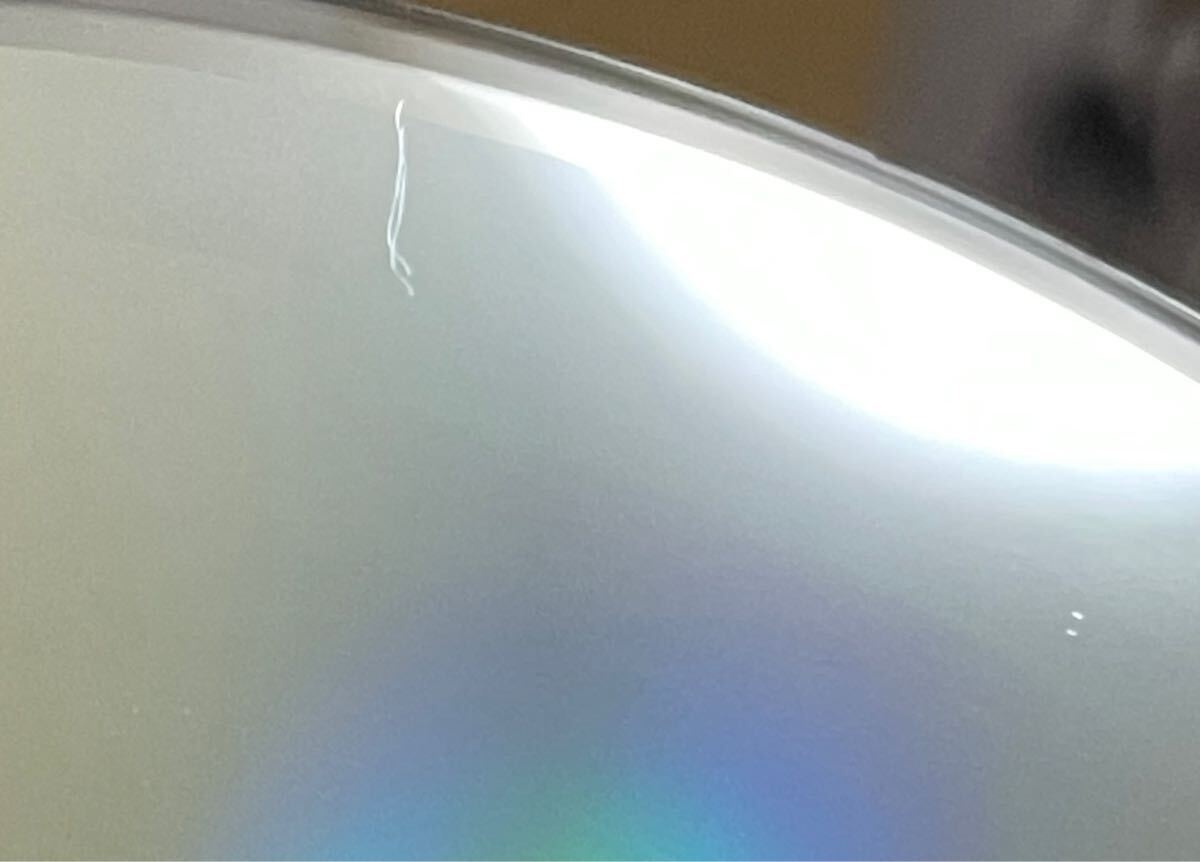 盤には軽く触れてはっきりと感じる様な深い物は見られませんが、画像の様な擦れ、薄傷が見られます。PCへの取り込みは問題無く行えましたが、環境によっては再生に影響が出る可能性があるかと思います。その旨ご了承頂いた上でご検討をお願い致します。