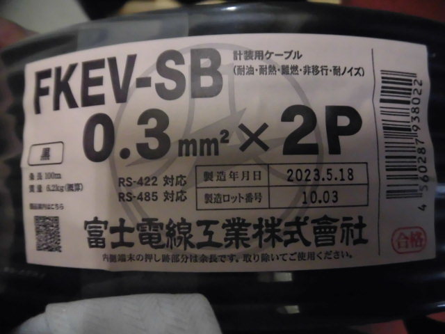 | 富士電線工業製 FKEVケーブル 計測用ケーブル キャブタイヤ 0.3sq×2P 100M 新品 2023年製造 | ||
