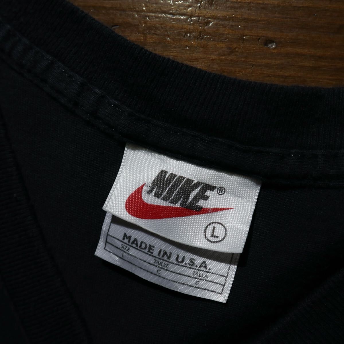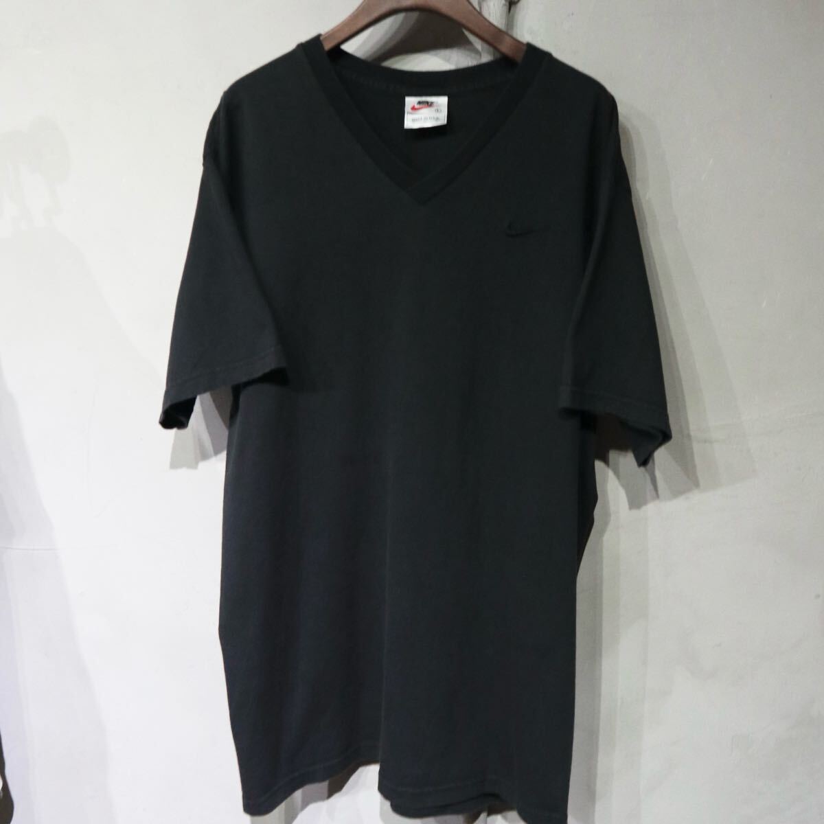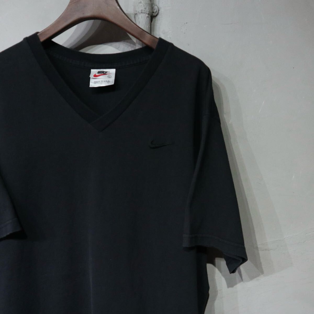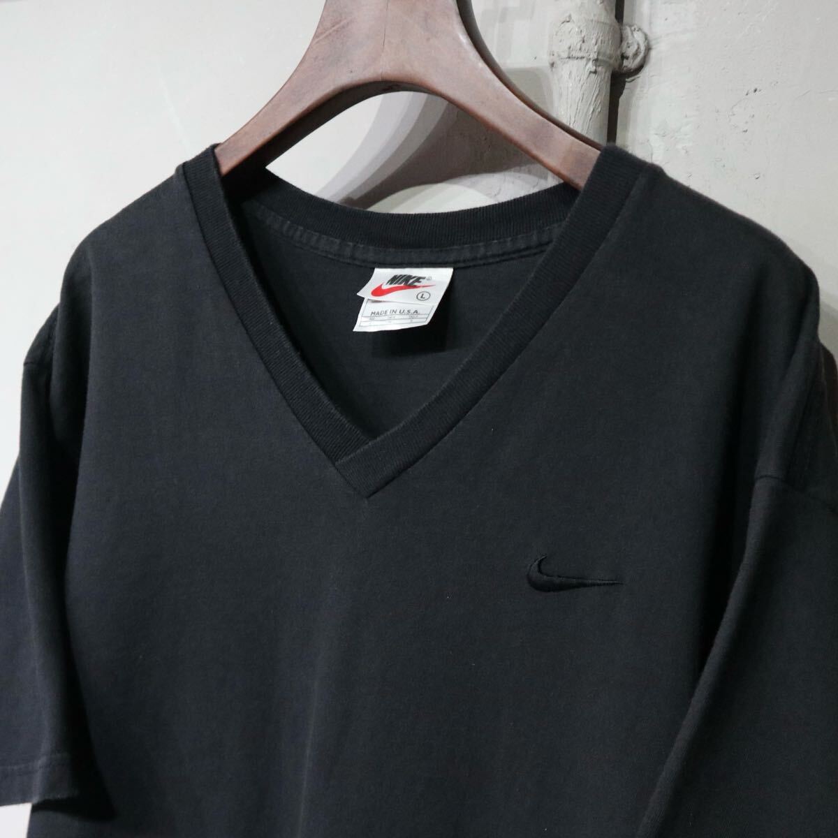 【即決】90s NIKE ナイキ スウォッシュ ワンポイント 刺繍 黒 ブラック Vネック Tシャツ 半袖 USA アメリカ製 古着 L 收藏