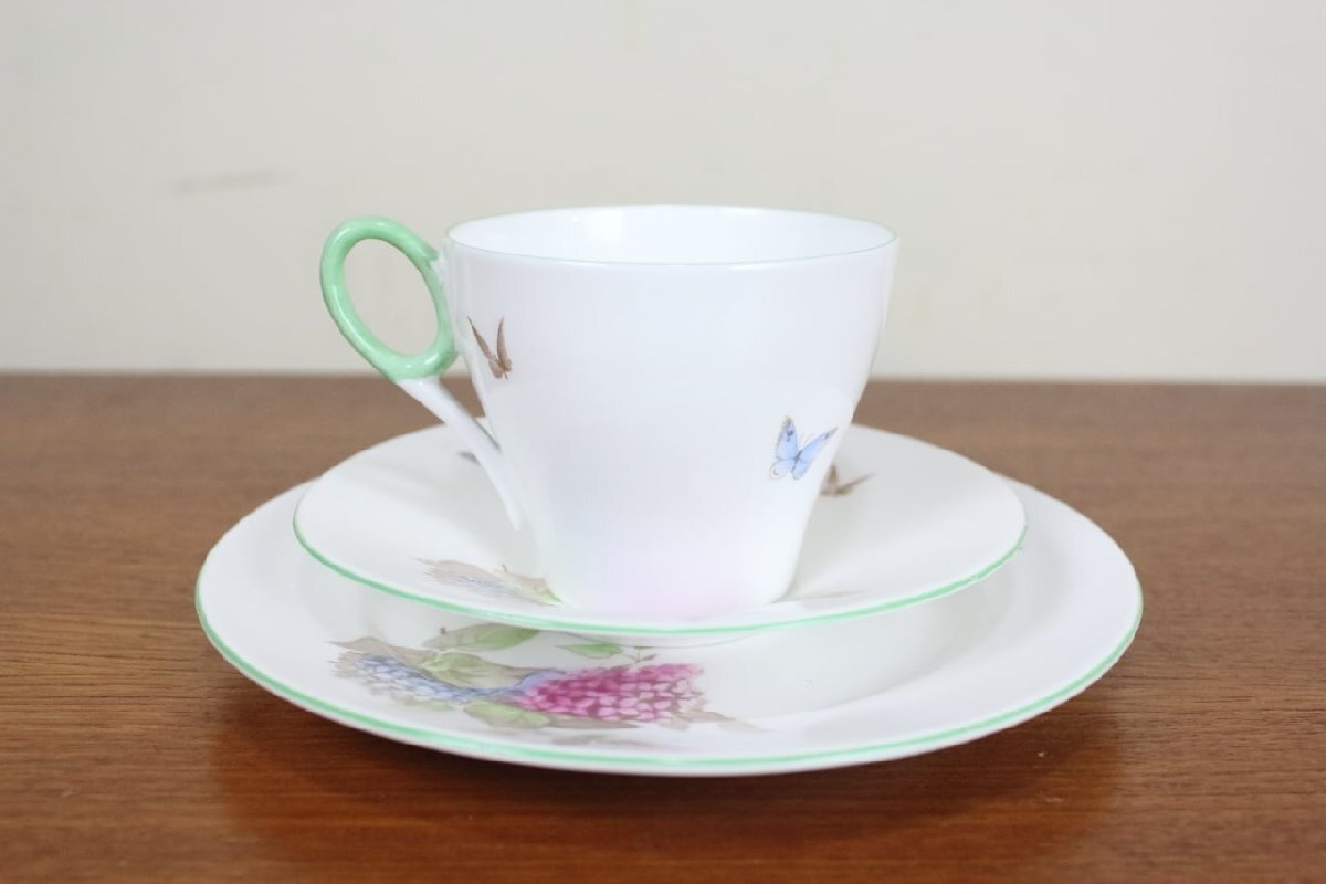 シェリー トリオ 紫陽花 カップ プレート オックスフォードシェイプ Shelly イギリス ヴィンテージ 食器 せ4 收藏