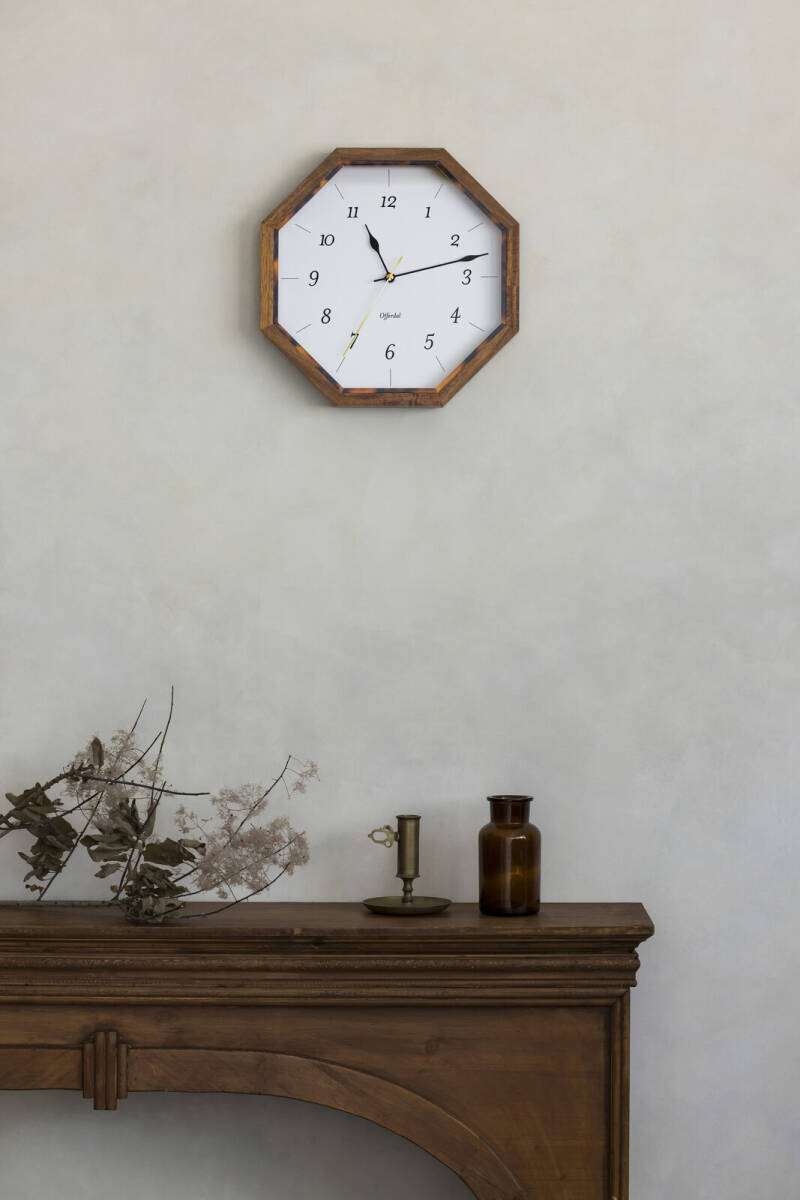 コチコチ音なし★掛け時計 ウォールクロック シンプル 八角形 風水 べっ甲調 木フレーム Ahteeアハテー CL-4295★ 收藏