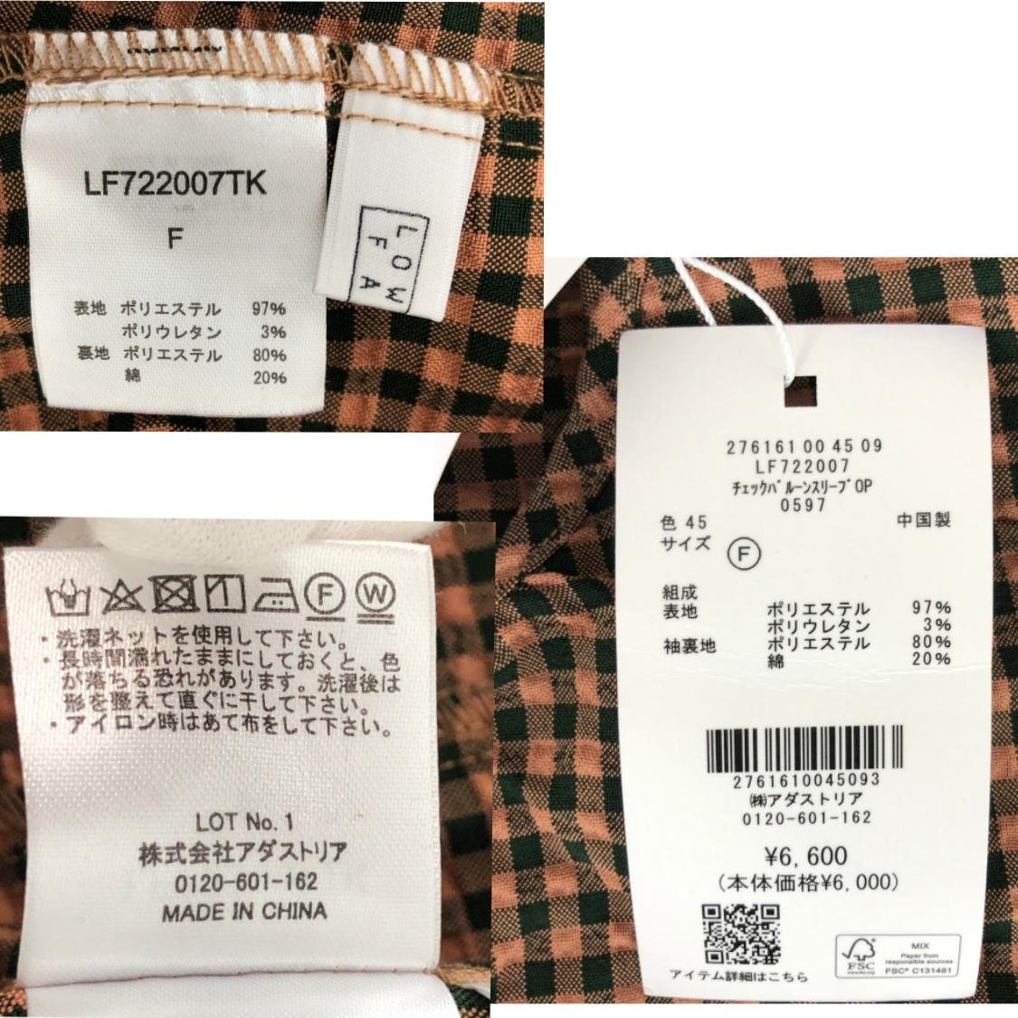 | LOWRYS FARM ローリーズファーム タグ付き チェックバルーンスリーブワンピース ロングワンピース SIZE: FREE ブラウン LH632025062004 | |
