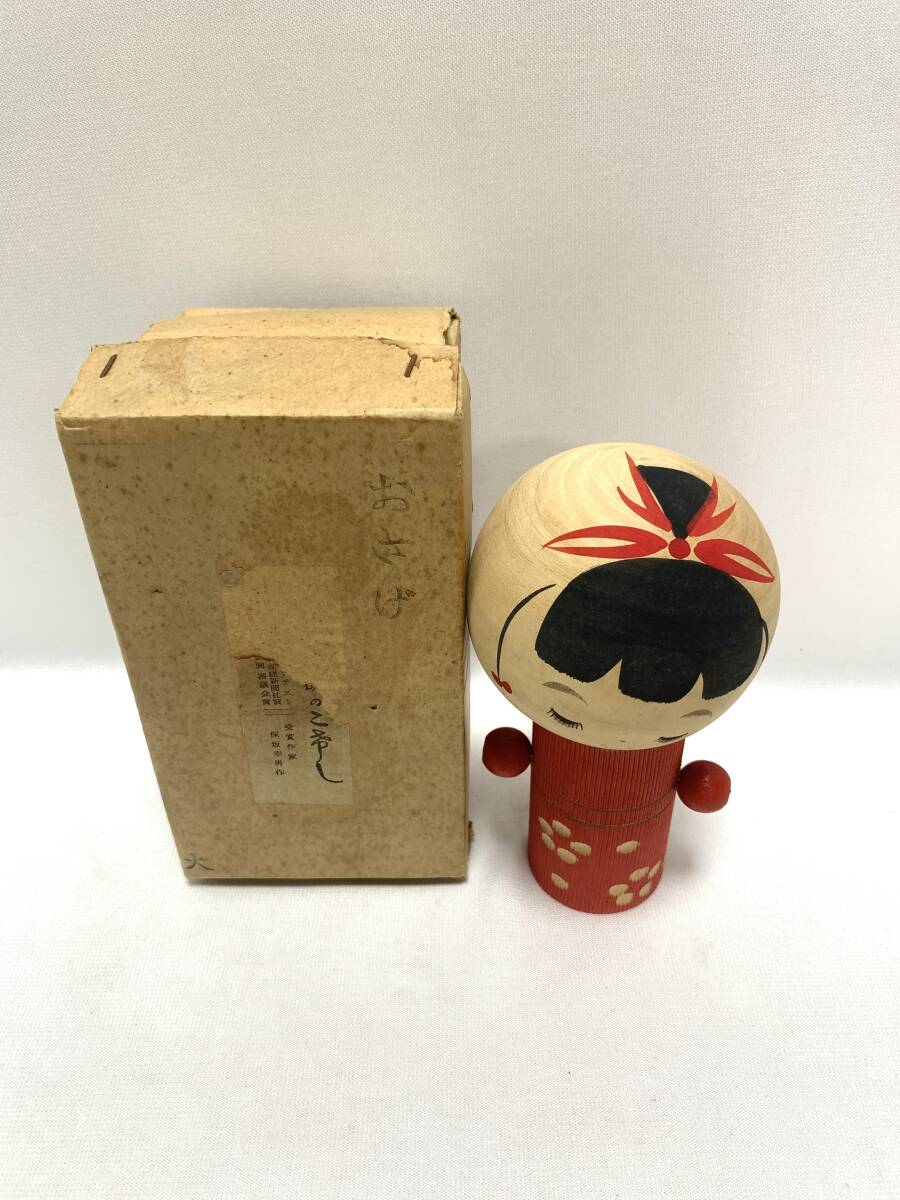 u460 「保坂幸男」おさげ 赤 かわいいこけし 現代こけし 箱入り 17cm 小さいこけし 民芸品 日本 ドール 收藏