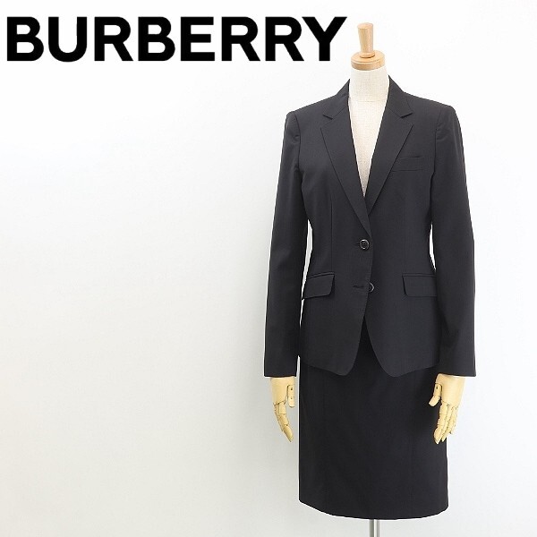【FA246】◆BURBERRY LONDON バーバリー ロンドン 裏地チェック柄 伊製生地 2釦 ジャケット&スカート スーツ セットアップ ダークネイビー 收藏