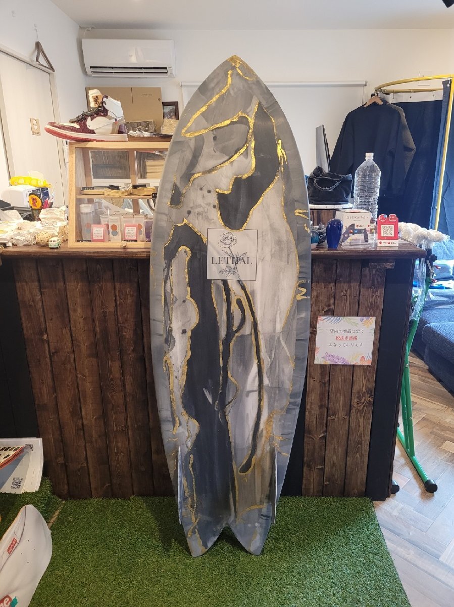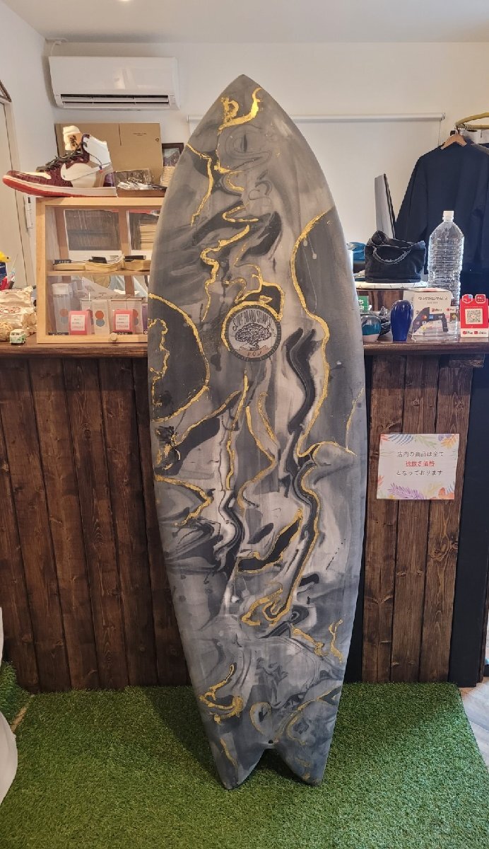 fish●サイズ5'8 × 22 × 2 5/8ノーズ→薄いvee中央前→ロール気味中央から薄いシングルコンケーブフィン付近で、深めのシングルコンケーブアブストラクト金箔仕様オンフィンイーグルノーズ中央→ミディアムテール→ダウンレールフィン付近からエッジ立てしっかりとボリュームのあるフィッシュを製作致しました少し派手になってしまいましたが、気に入ってくれる方がみえれば、嬉しいです。他の人と被らない物を探している方におすすめです!