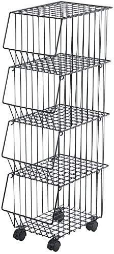 重ねてもバラしても使えるキャスター付きの4段バスケット 台所、子供部屋、リビングとどこでも使えるマルチタイプ 上棚が付いてさらに使いやすくなった