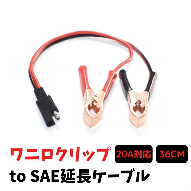 ・12V~24V汎用 ワニ口クリップ→SAEコネクタ延長ケーブル