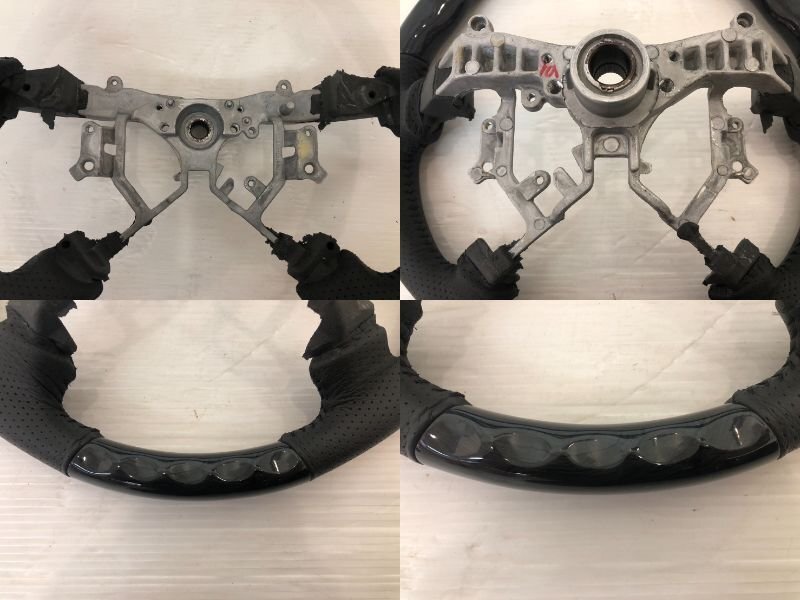 【店舗引取歓迎】トヨタ ハイエース ワゴン TRH219W 3型 社外 黒木目調 レザー ステアリング ハンドル 200系 パンチレザー 385Φ 4 收藏