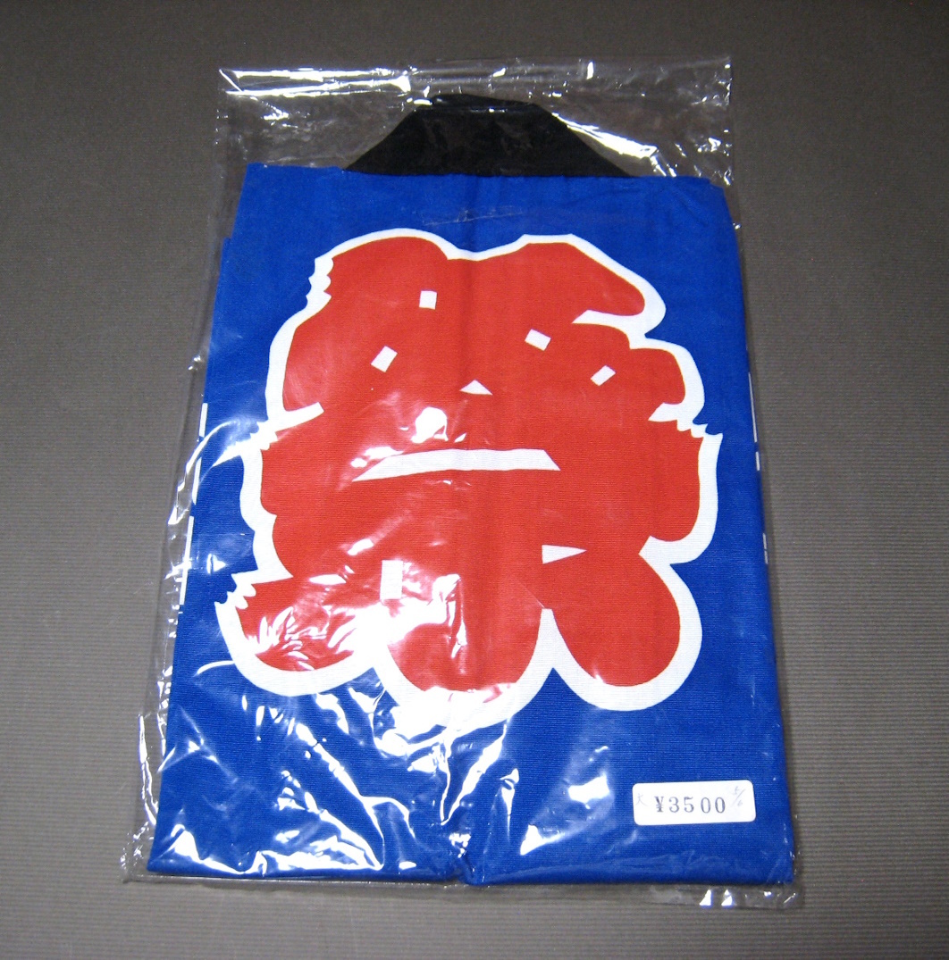 法被 子供用 青色 未使用保存品 着丈51.5cm 腰ひも 祭り ハッピ 5~6歳 太鼓 日本製 綿100% 收藏