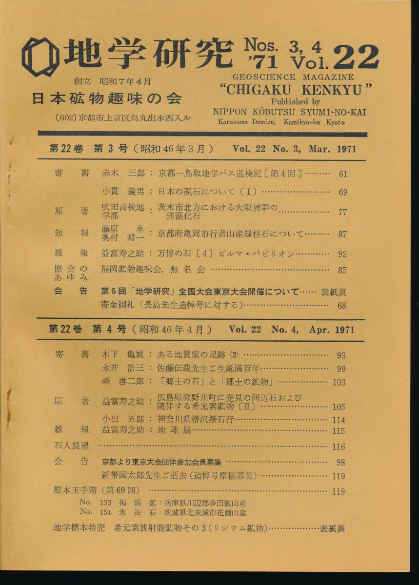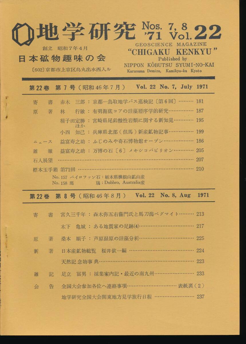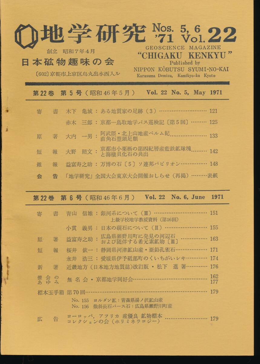 ☆『地学研究 第22巻 5冊』化石・地形・岩石・鉱業史・鉱山学・鉱物・鉱床学・鉱石・地下資源・地質 收藏