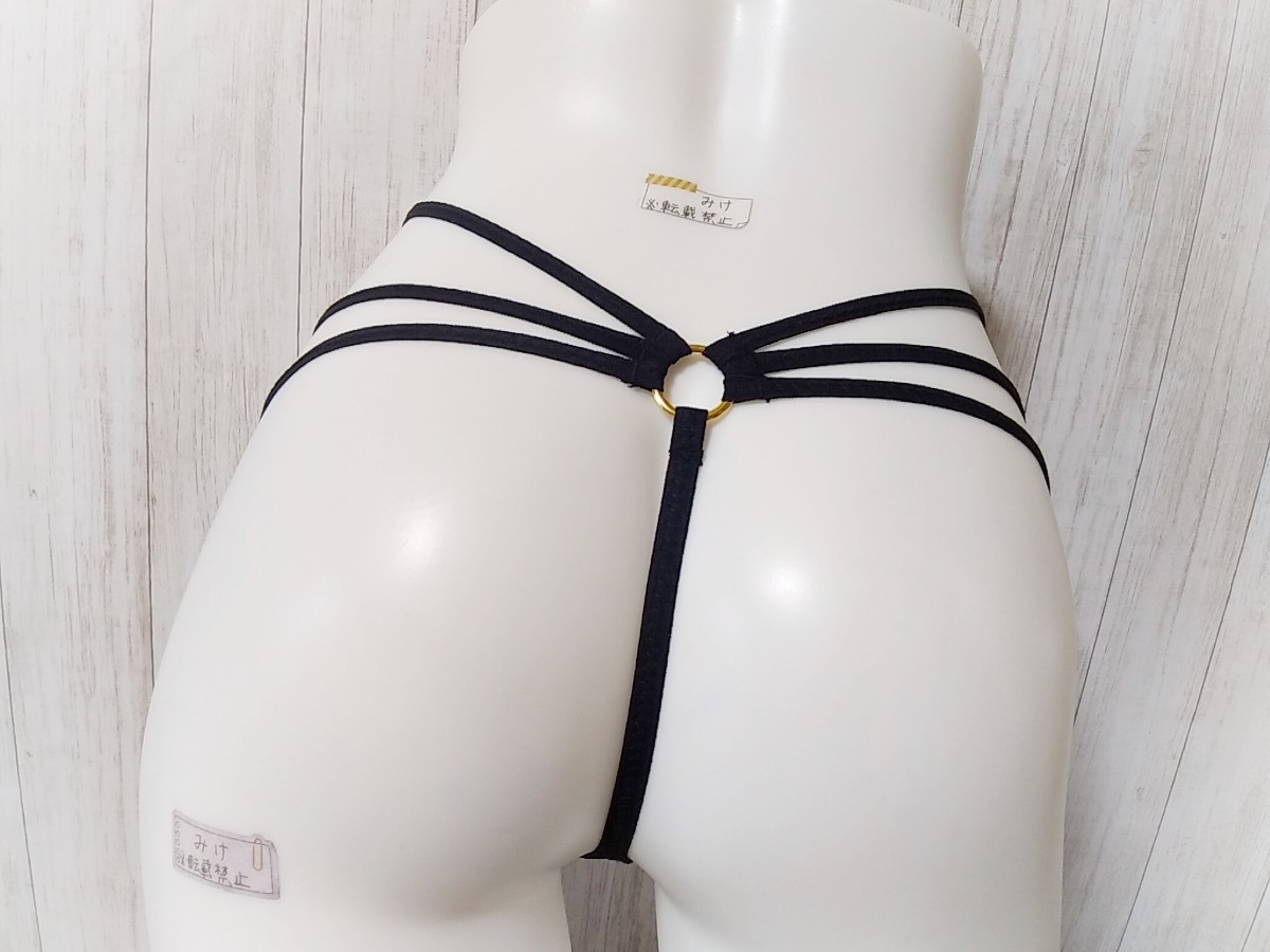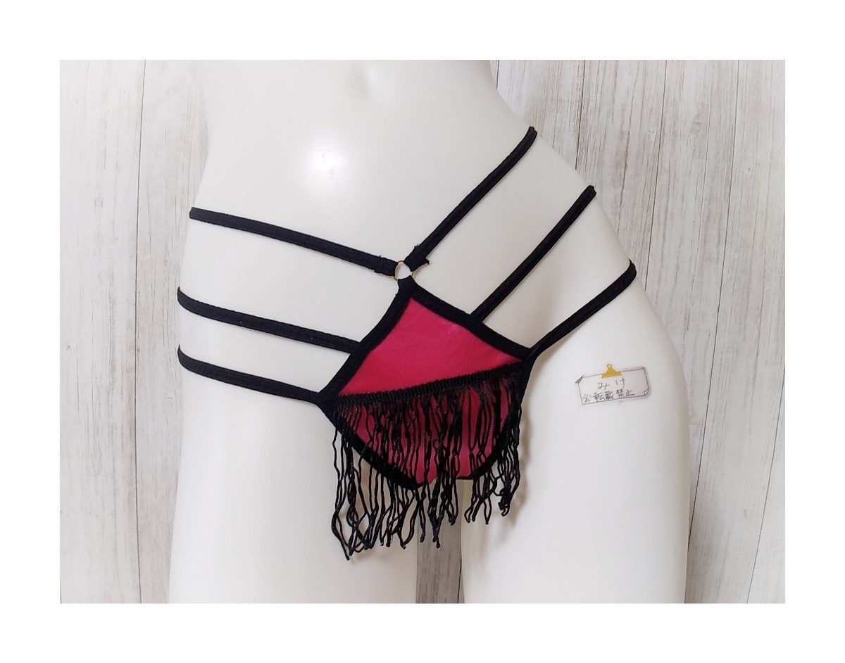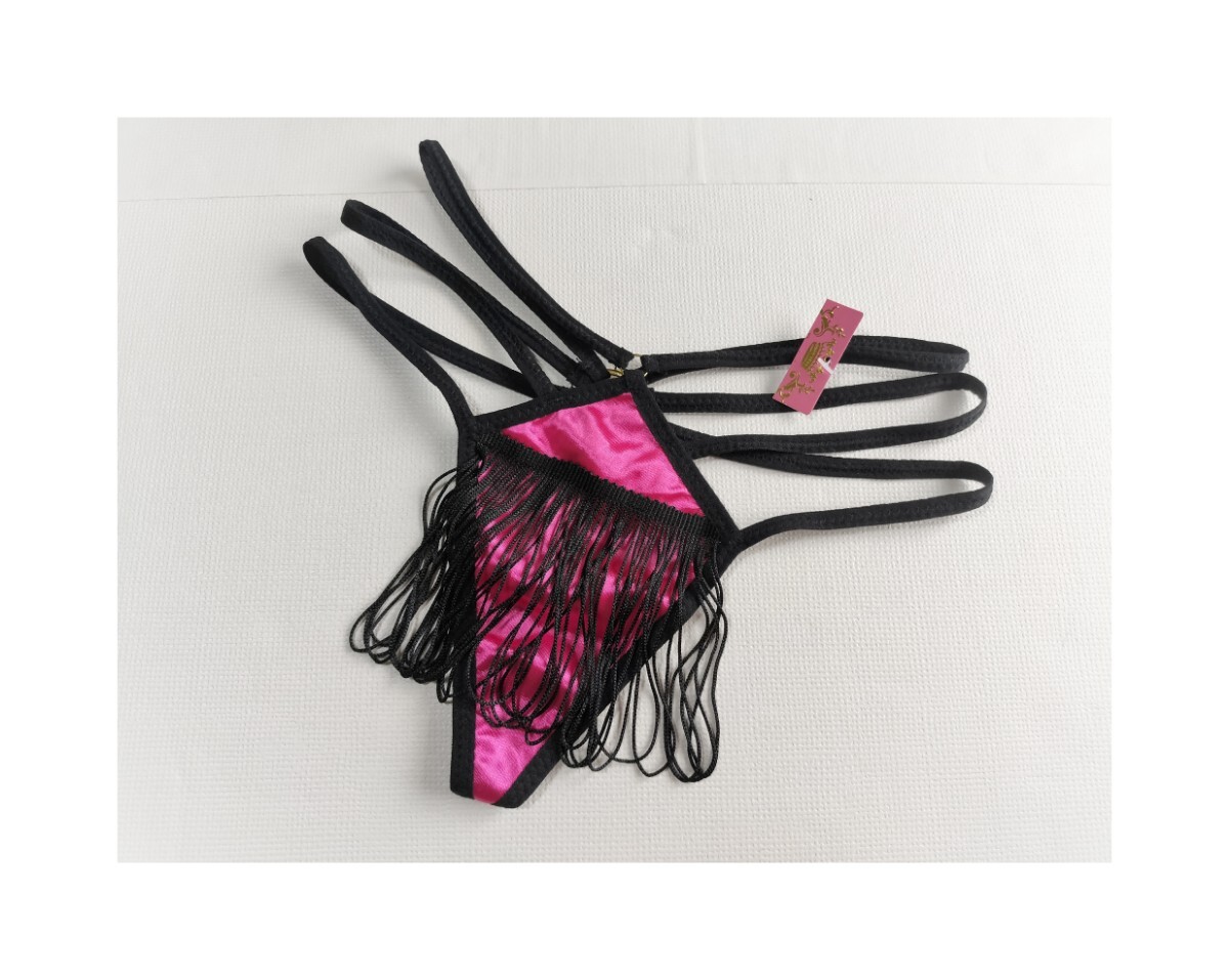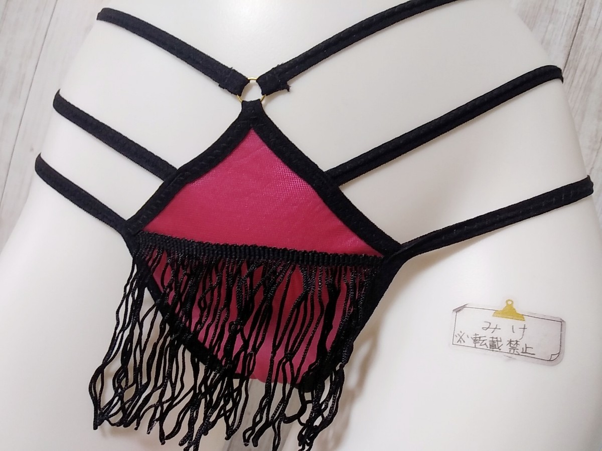 ★新品★ M Tバック ショーツ ブラック×ピンク フリンジ サテン 光沢 セクシーランジェリー 收藏