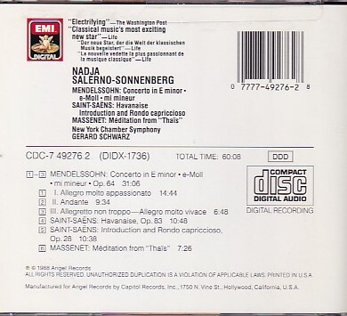 ナージャ・サレルノ・ソネンバーグ メンデルスゾーンヴァイオリン協奏曲 ハバネラ タイスの瞑想曲 序奏とロンド・カプリッチョーソ 收藏