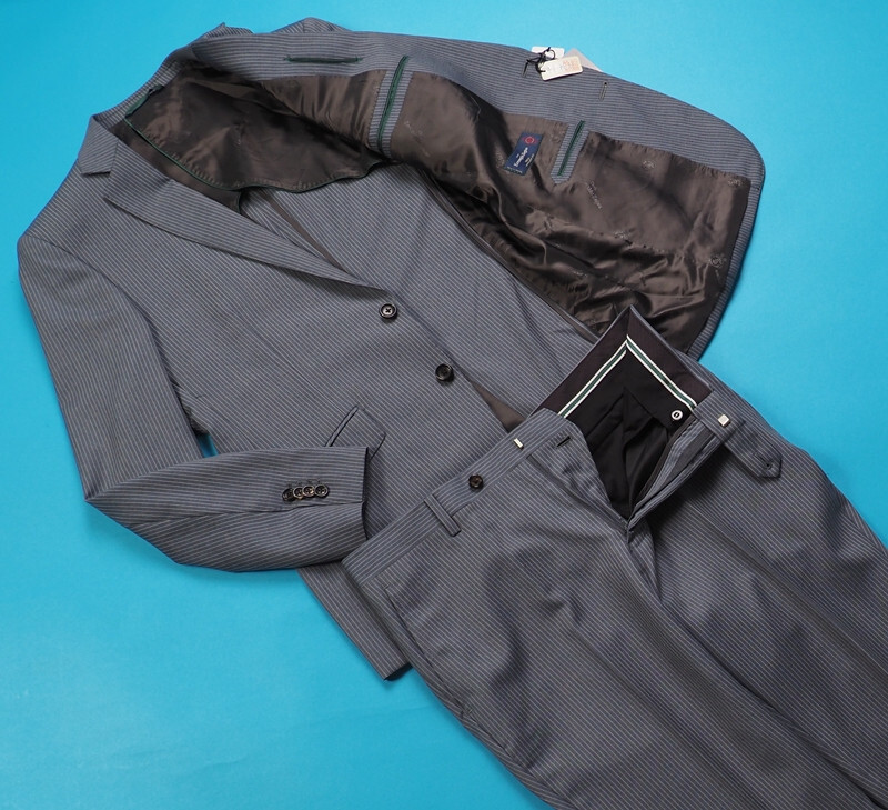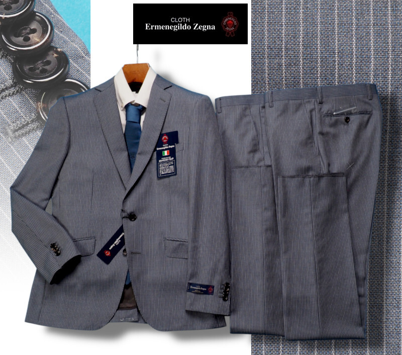 新品19.5万円 大手百貨店扱い 春夏『Ermenegildo Zegna ゼニア TROPICAL 伊製生地』ウール100% ストライプ ツーパンツスーツA7灰(H)1509672 收藏