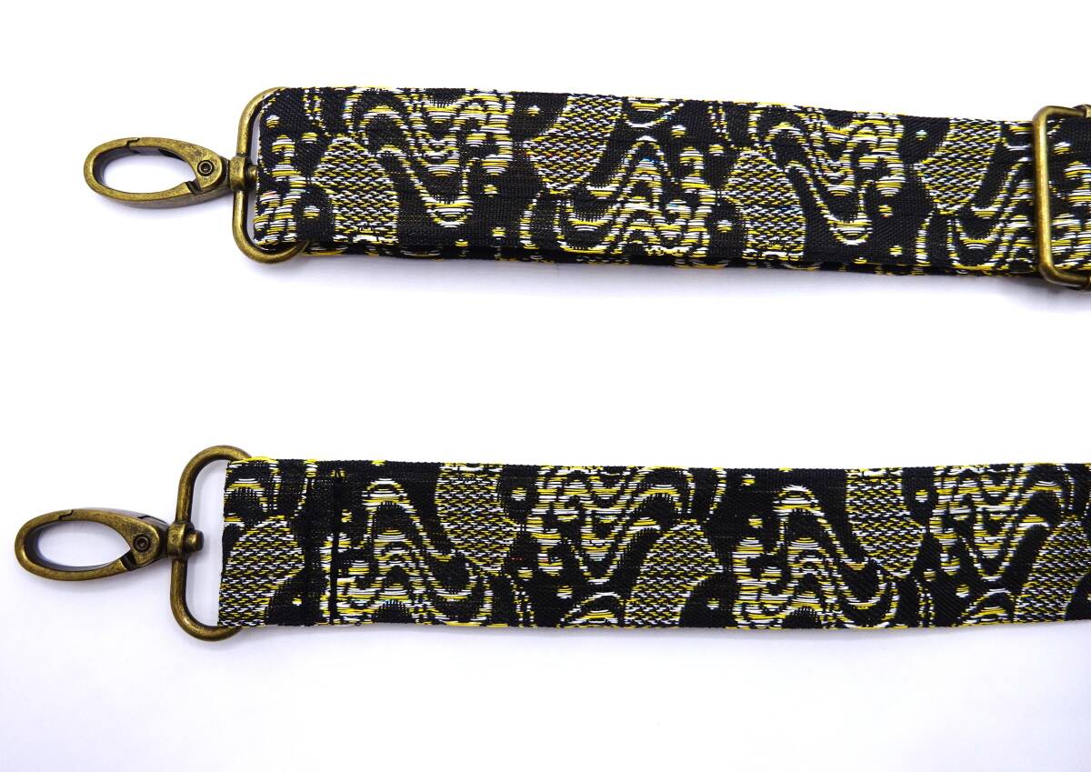 ◆送料無料◆手作り 畳縁ショルダー紐・黒銀波紋 (取り外し&調節可能) 新ナスカン金具付き 肩紐 斜め掛け 和柄 バッグ カメラ ストラップ 收藏