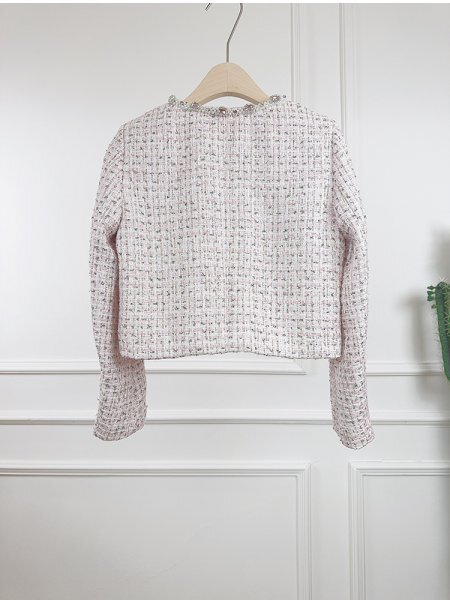 新品秋冬暖かいレディースツイードジャケットレザーコートピンクM 收藏