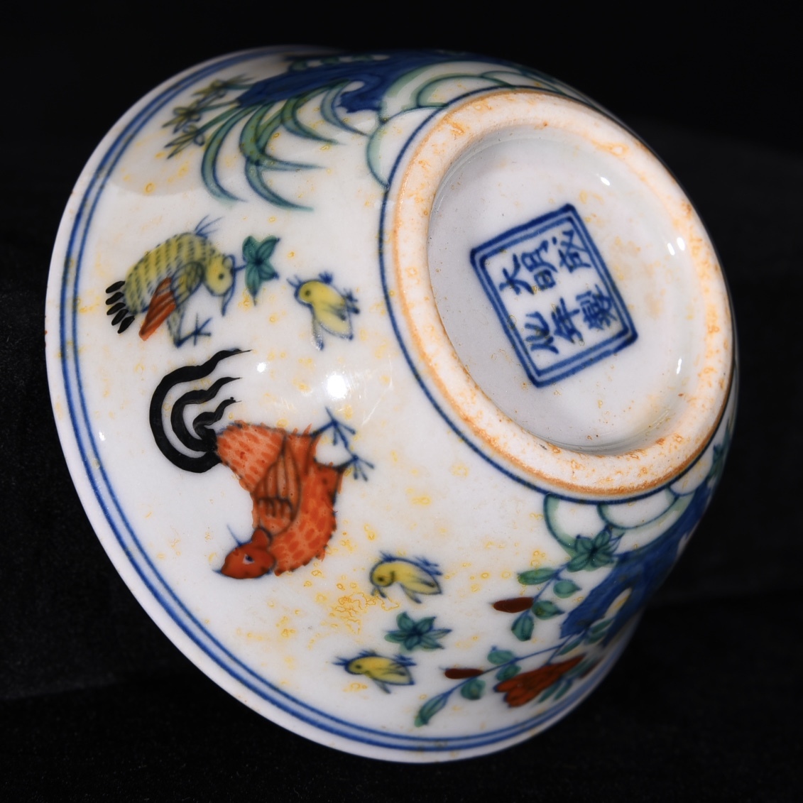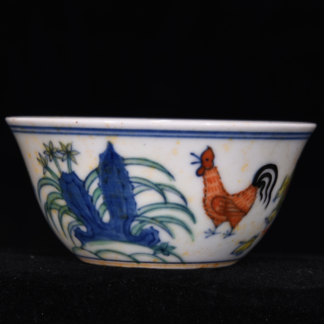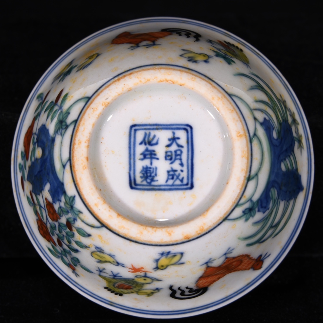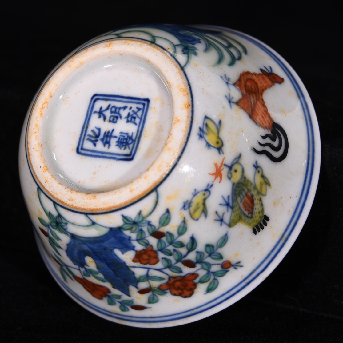 明時代 成化 闘彩 鶏かめ杯 古陶磁器 青花 置物 時代物 古董品 骨董 旧家蔵出 唐物 中国古玩 古美術品125 收藏