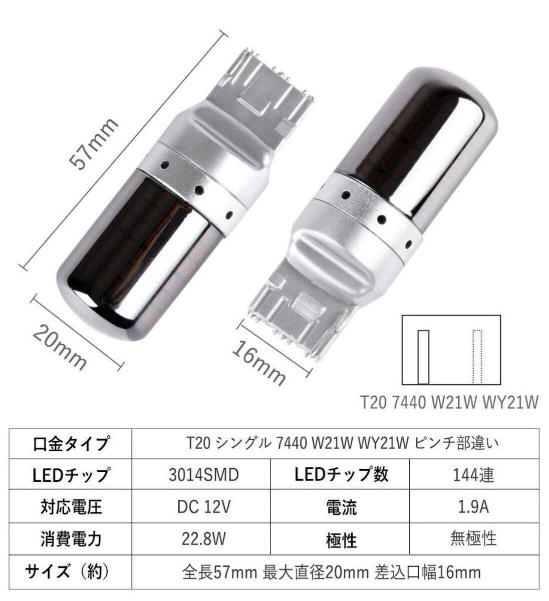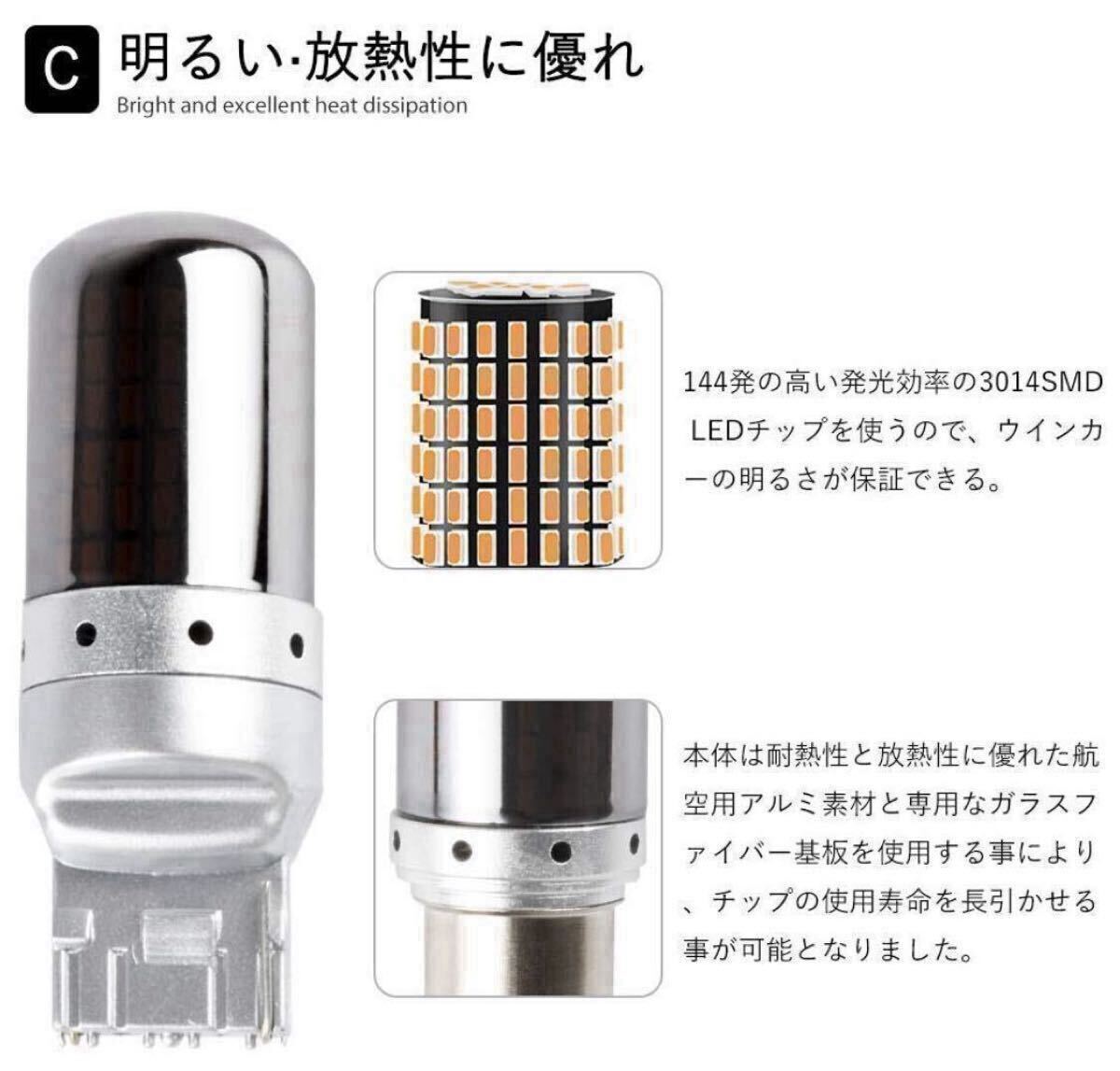 爆光 新製品 新品 LED T20 ステルスウインカーバルブ オレンジ色 ハイフラ防止抵抗内蔵 2個セットCREE.. 收藏