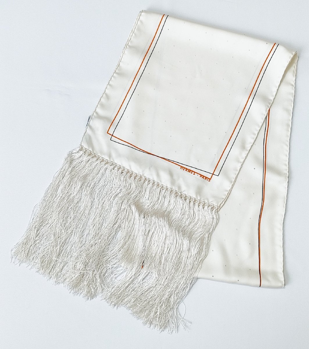S2463●HERMES エルメス フリンジ パンチング ストール シルク オフホワイト/アイボリー系 收藏