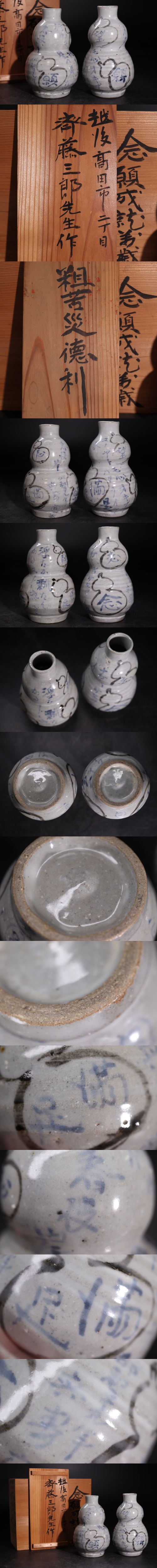 | 斎藤三郎 作 粗若災 徳利 二点 木箱付 / 染付 墨彩 酒器 茶器 煎茶道具 煎茶飾 .G2755 |
