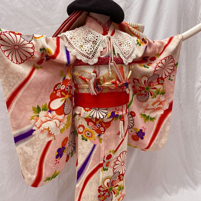 ◎七五三 七歳 女児 アンティーク着物&袋帯 総柄 ピンク系◎ 510ag24 收藏