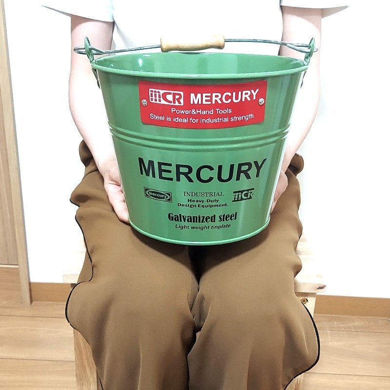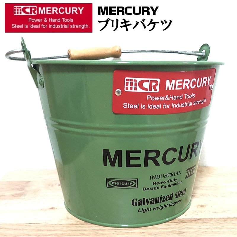 バケツ おしゃれ マーキュリー ブリキ製 MERCURY ロゴ カーキ 小物入れ アメリカン 雑貨 インテリア おしゃれ 収納 部屋 緑 アウトドア 收藏