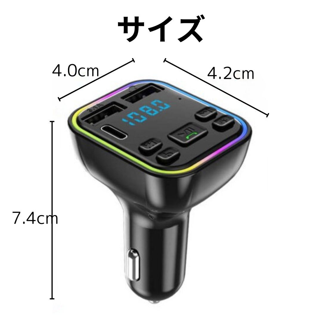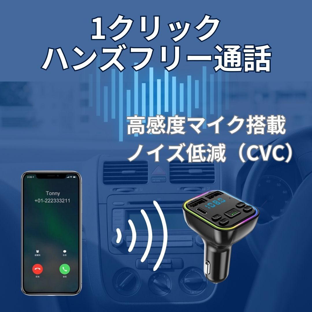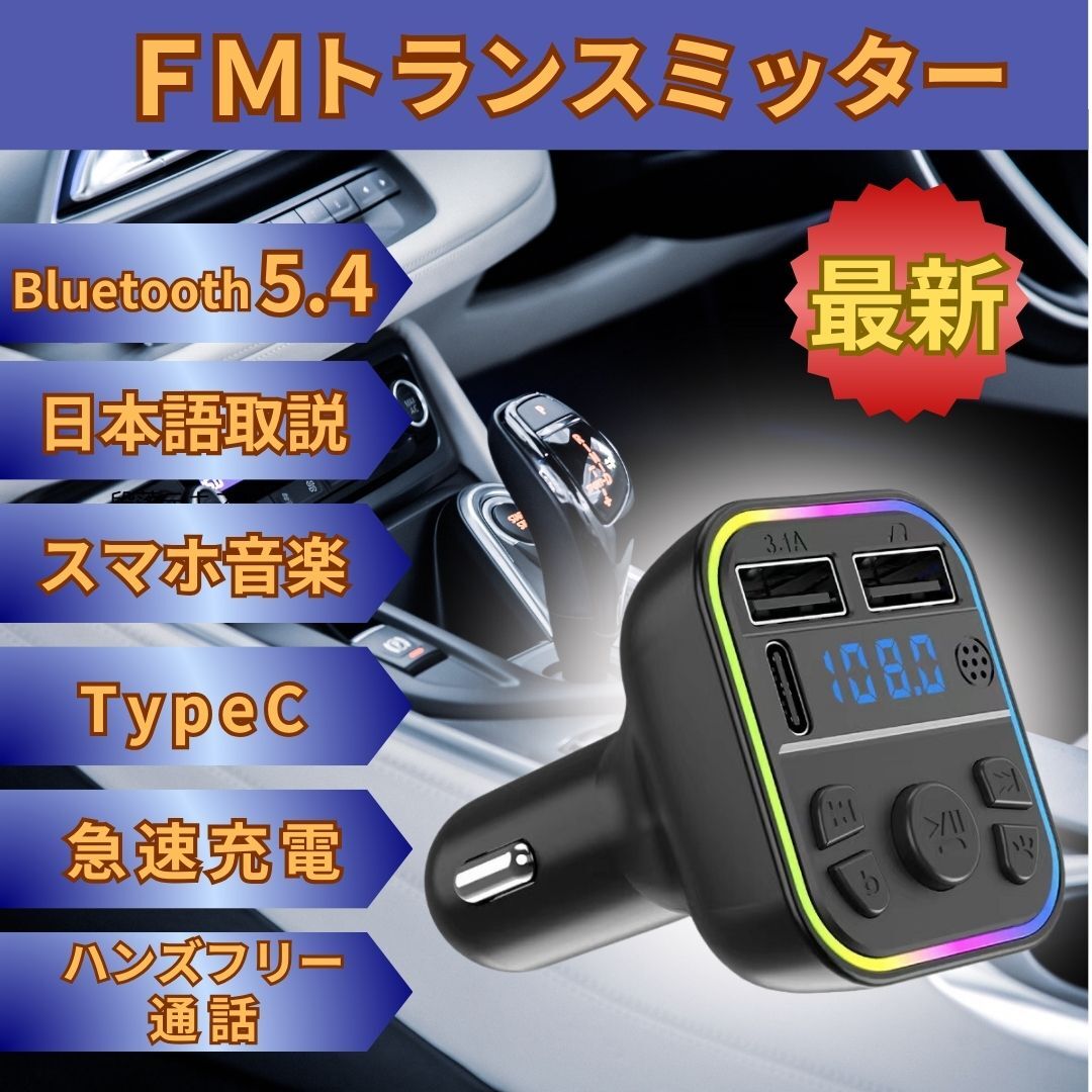 FMトランスミッター 音楽再生 ハンズフリー通話 Bluetooth 5.4 Type-c USB MP3 急速充電 シガーソケット スマホ充電 FM USB充電 iPhone 收藏